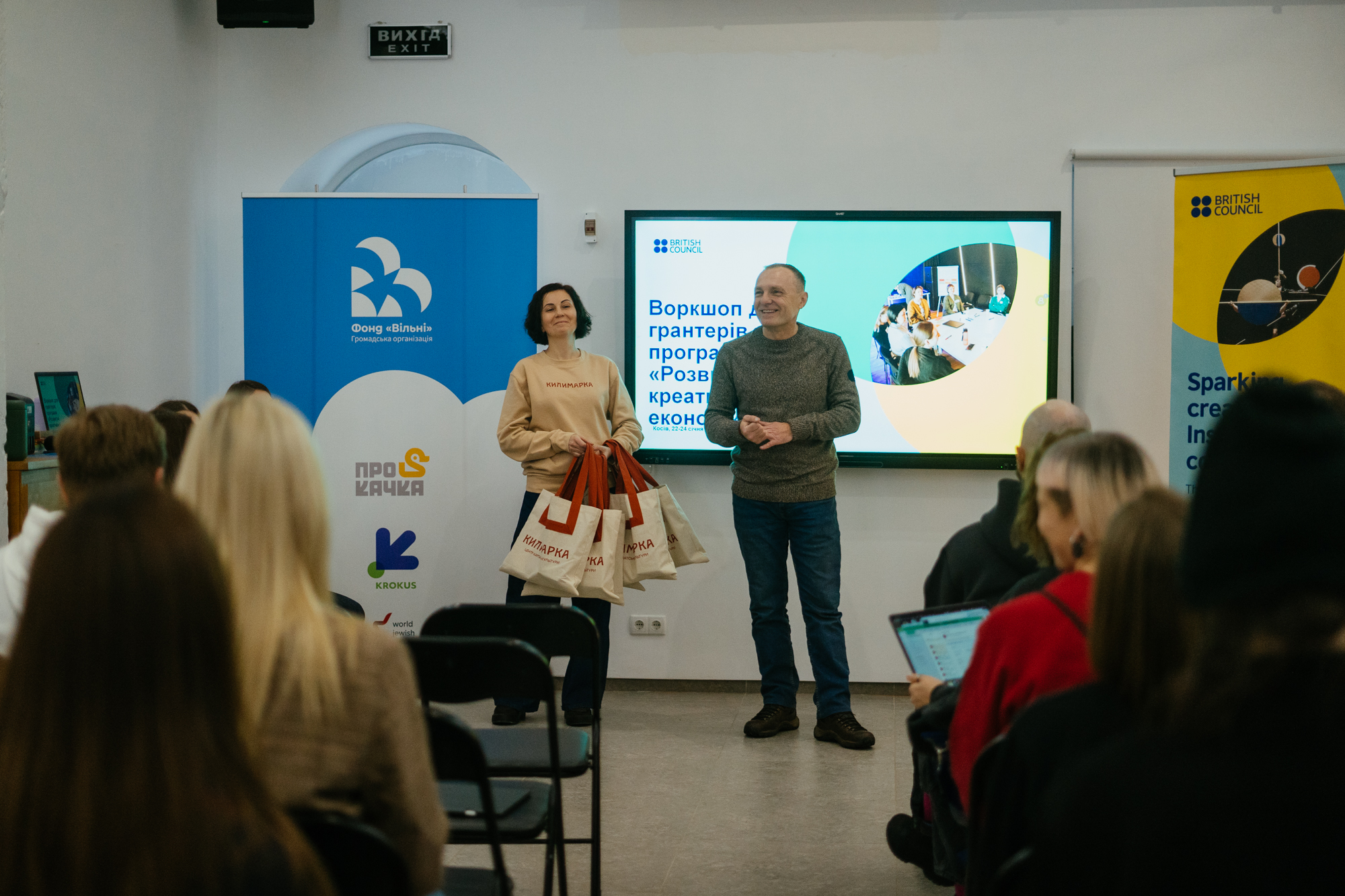 22 та 23 січня «Килимарка» перетворилась на справжній інтелектуальний вулик. Ми мали честь приймати представників програми «Гранти для розвитку креативної економіки» від British Council Ukraine. Ця подія стала особливою, адже вона вперше об’єднала на одному майданчику грантерів одразу двох сезонів: досвідчену спільноту 2024–2025 років та нову амбітну хвилю 2025–2026 років.